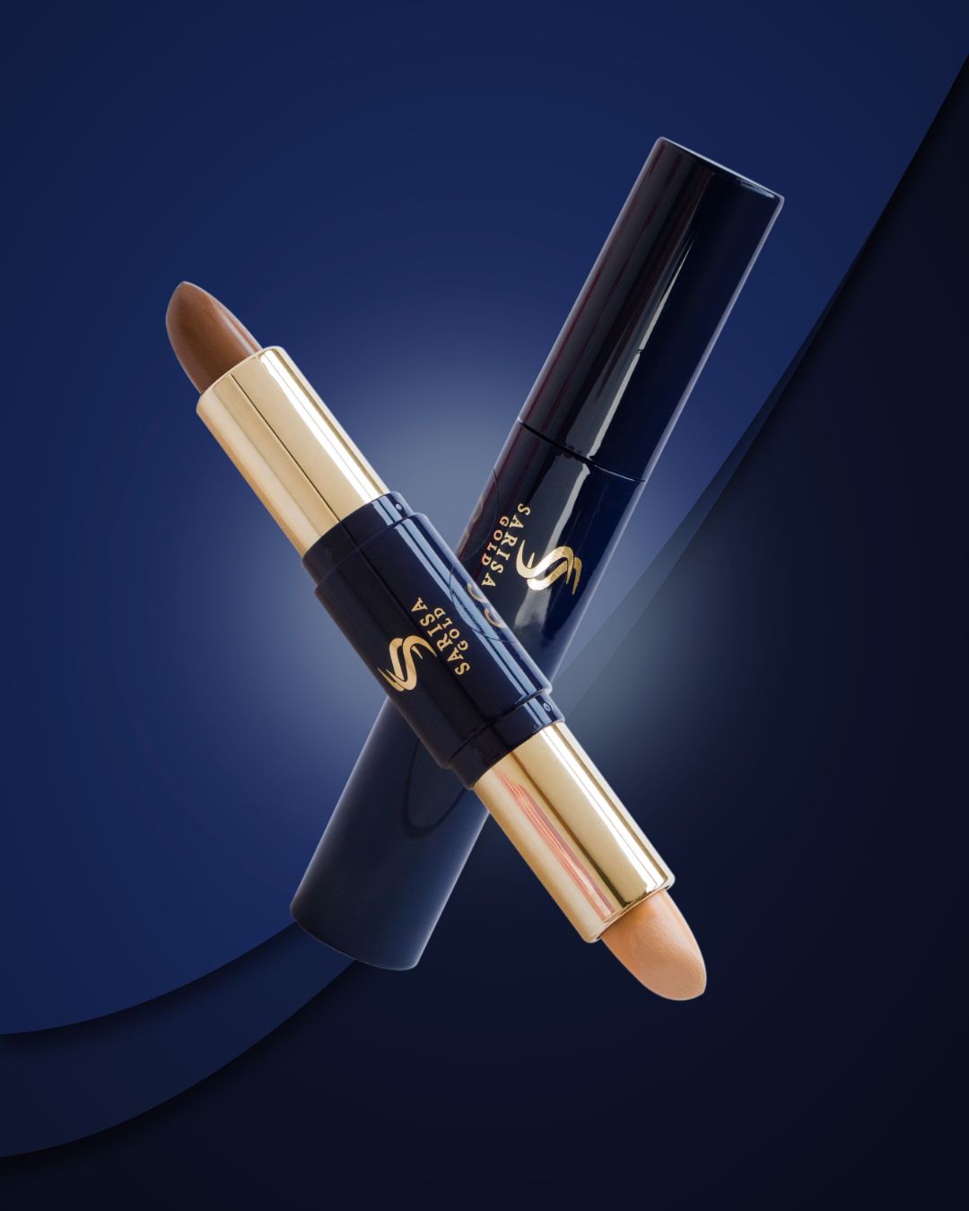 کانتور کانسیلر دو سر ساریسا گلد یک محصول شبیه مداد یا قلم استیکی دو طرفه می باشد. یک سمت آن تیره است که برای زاویه دادن به صورت و کانتورینگ به کار می رود. و سر دیگر آن برای پوشش تیرگی زیر چشم، جای انواع جوش و لکه پوستی کاربرد دارد. جلوه نهایی کار به صورت مات می باشد.